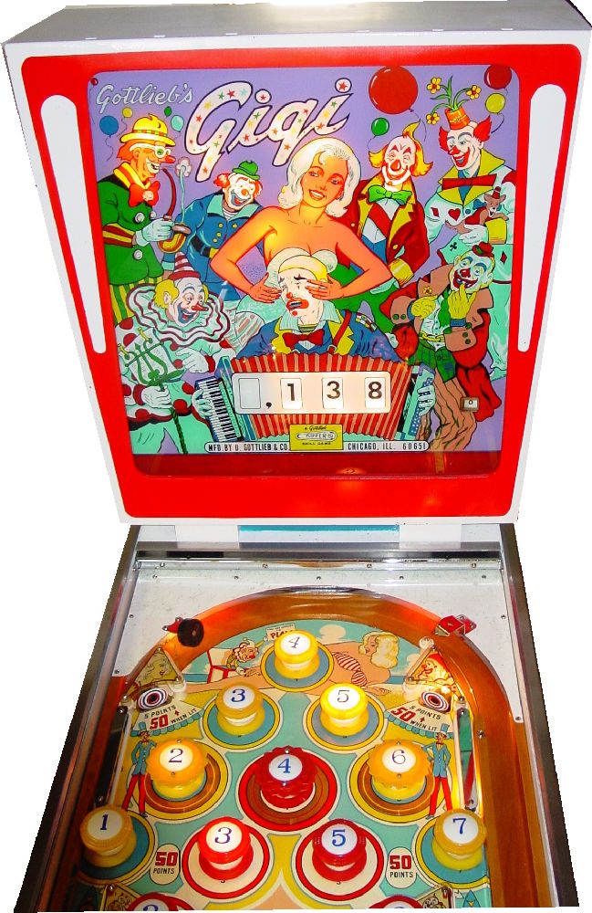 | 1963 | GIGI first with a Bonus Score feature | GOTTLIEB |  |  |  |