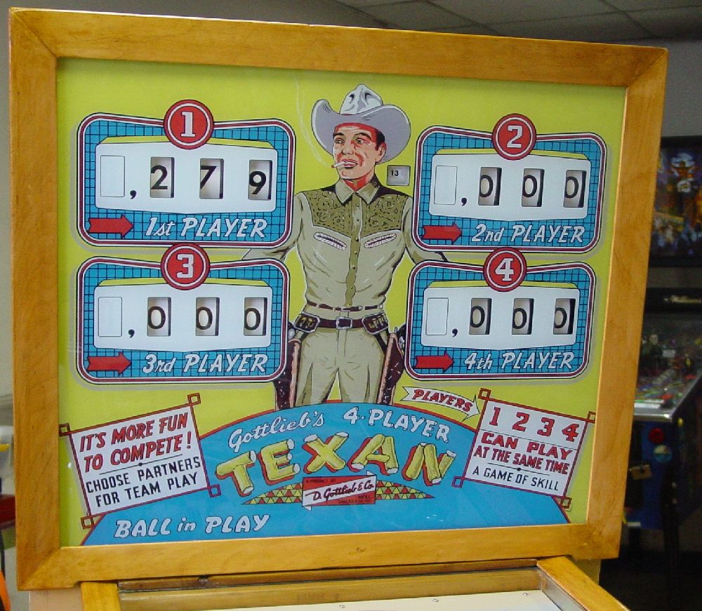 | 1960 | TEXAN last 4 players woodrail | GOTTLIEB |  |  |  |