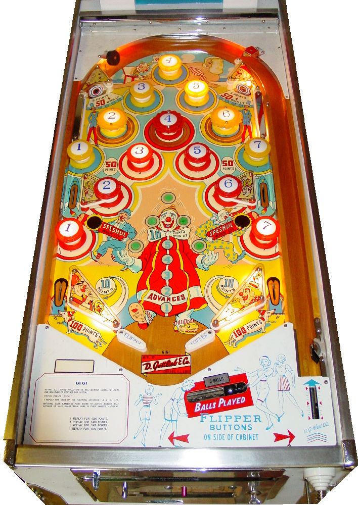 | 1962 | FLIPPER CLOWN add-a-ball machine | GOTTLIEB |  |  |  |